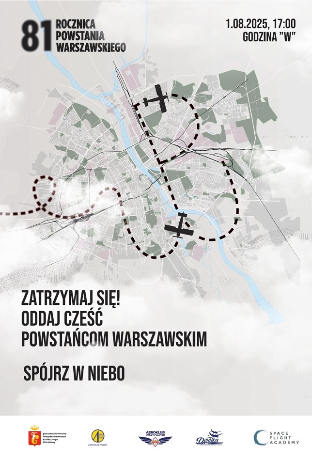 1 sierpnia, w „godzinę W”, Warszawa po raz 81. zatrzyma się w ciszy i zadumie, oddając hołd tym, którzy w 1944 roku stanęli do nierównej walki o wolność. W tym dniu nad miastem warszawscy piloci przygotowali specjalny pokaz - niebo nad stolicą też przypomni o historii. Z inicjatywy "Dwójki z Aw" z Aeroklubu Warszawskiego oraz Aeroklubu Polskiego 1 sierpnia na niebie pojawi się znak Polski Walczącej — narysowany białą smugą dymu przez doświadczonych pilotów. Oprócz tego wzdłuż Wisły przeleci samolot holujący baner z napisem „Pamiętamy 1944”. Dymny znak będzie malowany o 17.00 i widoczny w osi Alej Jerozolimskich, mniej więcej od Dworca Centralnego do ronda de Gaulle’a. Piloci wykonają go także ponownie w rejonie Mostu Świętokrzyskiego. Piloci z misją pamięci Za sterami samolotów zasiądą piloci zespołu pokazowego Aeroklubu Warszawskiego, „Dwójka AW” w składzie Hubert Massalski, Radek Izdebski oraz prezes Aeroklubu Polskiego Jerzy Makula, pilot i wielokrotny mistrz świata w akrobacji szybowcowej. Dymne znaki będą wykonywane z samolotów Carbon Cub i dwóch maszynach polskiej konstrukcji AT-3. Wydarzenie zostało objęte honorowym patronatem prezydenta m.st. Warszawy.